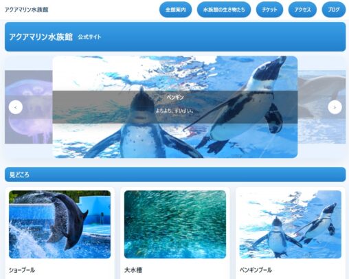 架空の水族館のサイトを作ってみました。 アクアマリン水族…